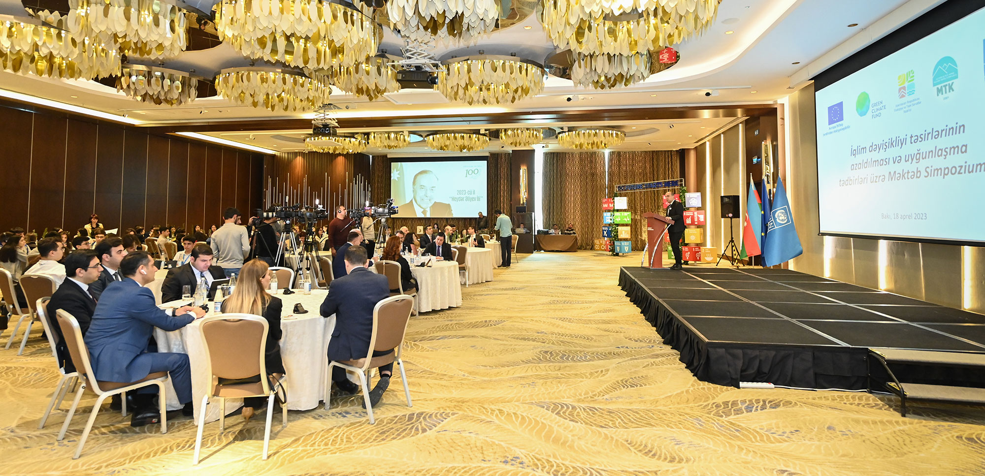 Aprelin 18-də gənc nəsli iqlim dəyişikliyi fəaliyyətlərinə təşviq etmək məqsədilə Elm və Təhsil Nazirliyinin tərəfdaşlığı, Ekologiya və Təbii Sərvətlər Nazirliyinin koordinasiyası, Avropa İttifaqı, Yaşıl İqlim Fondu və Birləşmiş Millətlər Təşkilatının İnkişaf Proqramının (BMTİP) birgə əməkdaşlığı nəticəsində iqlim dəyişikliyinin azaldılması və uyğunlaşma tədbirləri üzrə məktəb simpoziumu keçirilib.