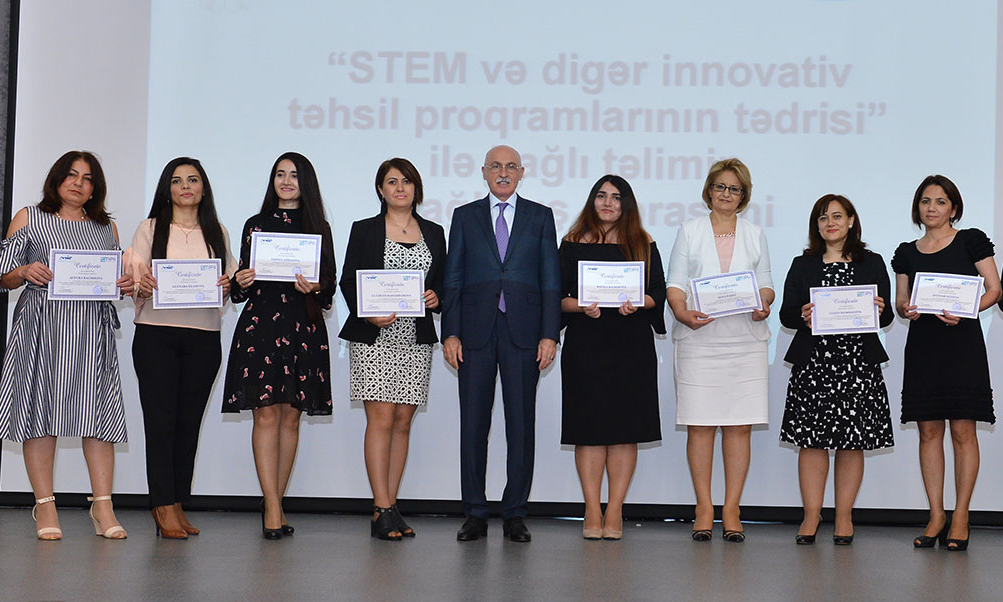 “STEM (Elm, Texnologiya, Mühəndislik və Riyaziyyat) və digər innovativ təhsil proqramlarının (robotexnika, kibernetika, nanotexnologiyalar və s.) tədrisi” ilə bağlı təlimin bağlanış mərasimi keçirilib.