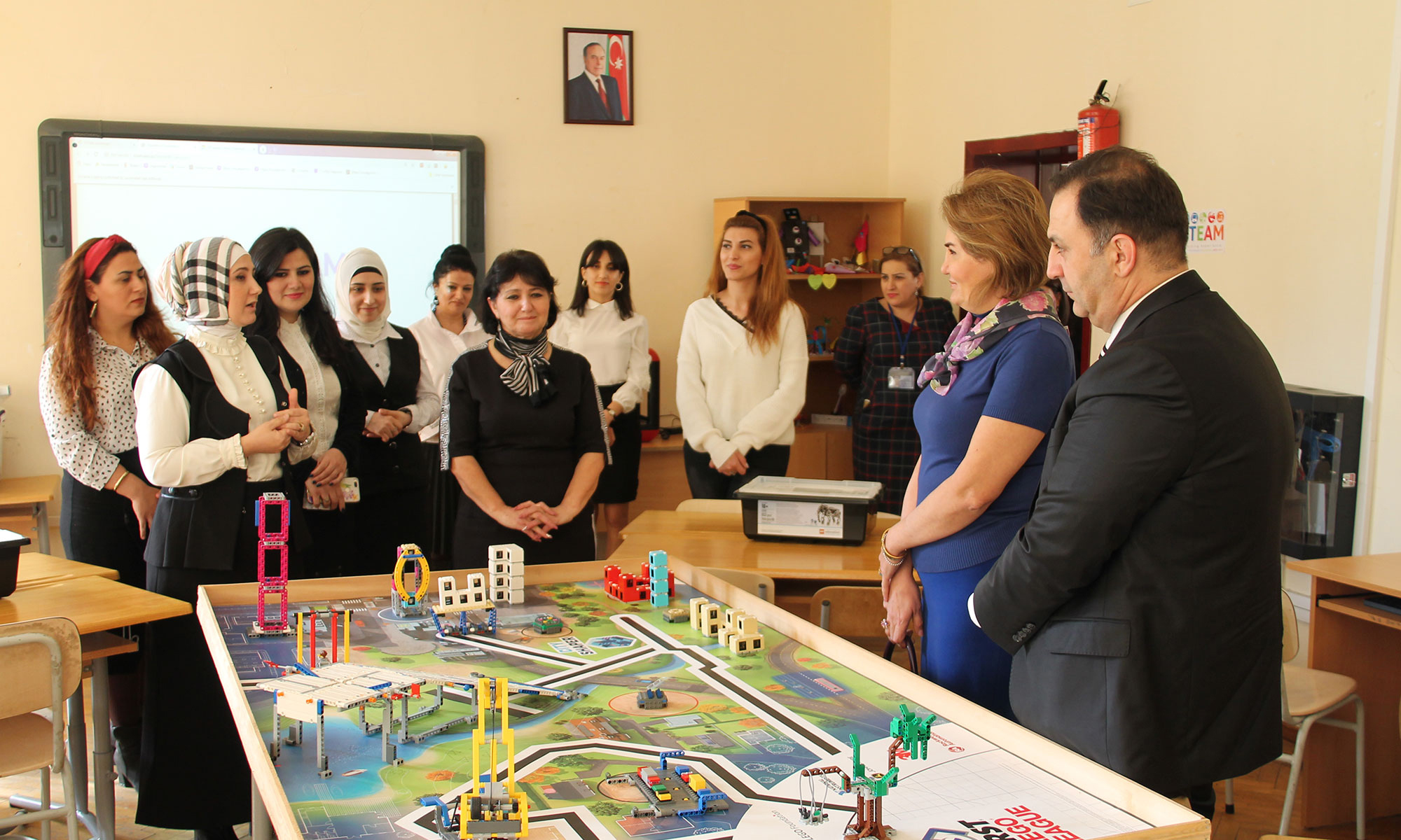 Nazir müavini STEAM dərslərini tədris edən müəllimlərlə görüşüb, STEAM məzmununun mənimsənilmə səviyyəsi, yeni metodologiya, konsepsiya və yanaşmaların müəllimlər tərəfindən tətbiqi ilə maraqlanıb. Həmçinin təhsilalanların dərs prosesi zamanı hazırladıqları əl işləri və kiçik layihələrlə tanış olub.