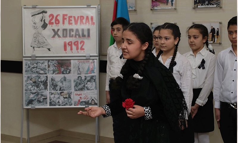 Tədbirlərdə soyqırım qurbanlarının xatirəsi bir dəqiqəlik sükutla yad edilib. Şagirdlərə Xocalı faciəsinin tarixindən bəhs olunub. Bildirilib ki, 1992-ci il fevralın 25-dən 26-na keçən gecə bədnam ermənilər xalqımıza qarşı növbəti qanlı təcavüzə əl ataraq dəhşətli soyqırım törədib, günahsız insanların başına vəhşiliklər gətirib, dinc sakinləri kütləvi şəkildə öldürüblər.